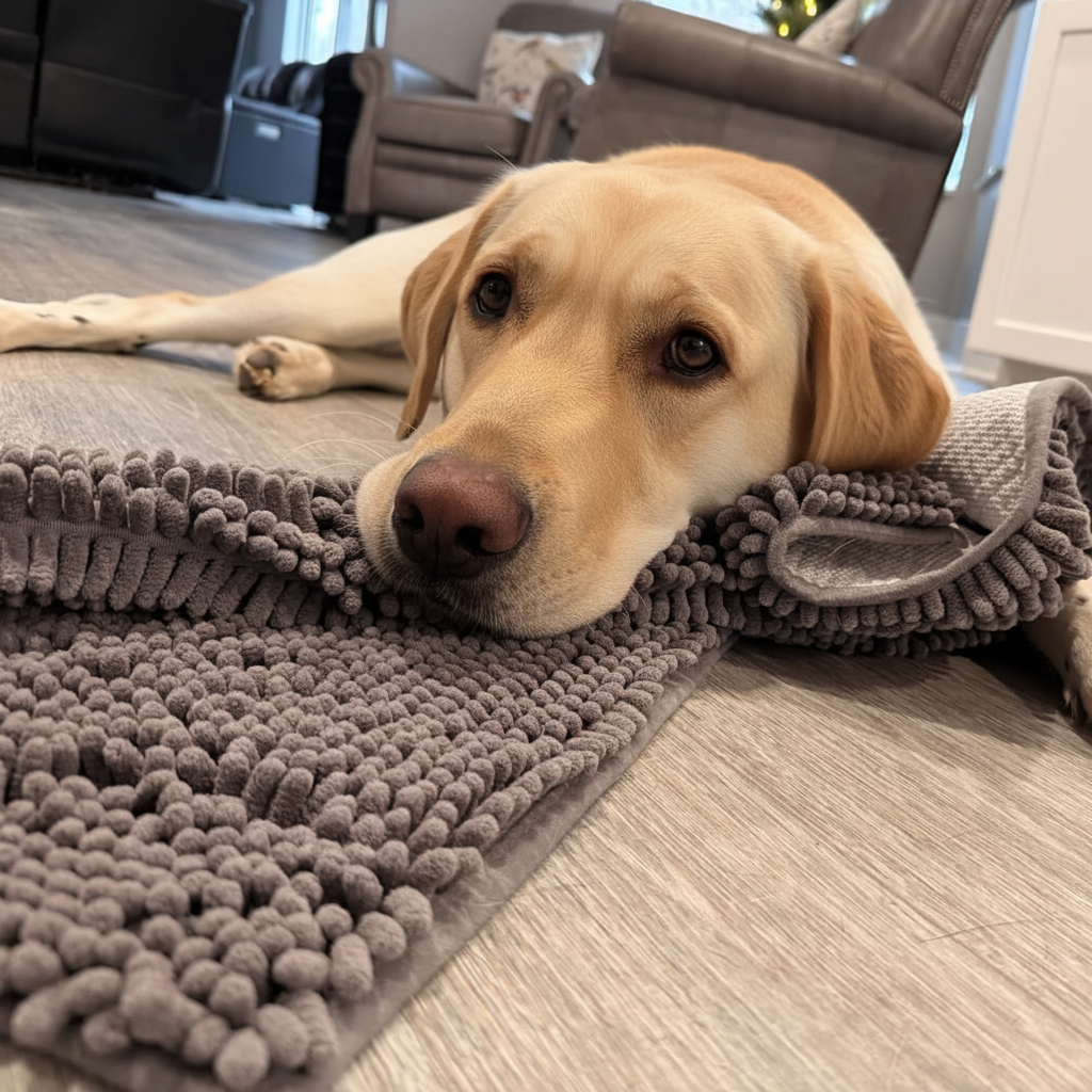 Every walk, every rainy morning, every backyard sprint — the mess follows you home. Towels don’t keep up, cheap mats slide, and wiping becomes a daily routine you never signed up for. You love your dog, but the muddy floors are exhausting.
